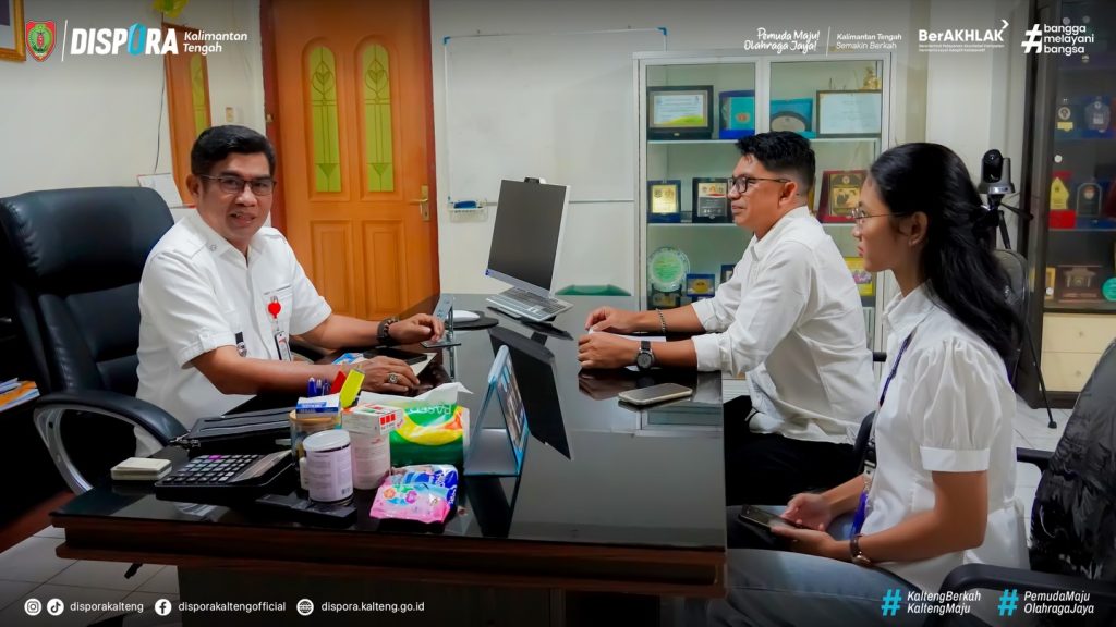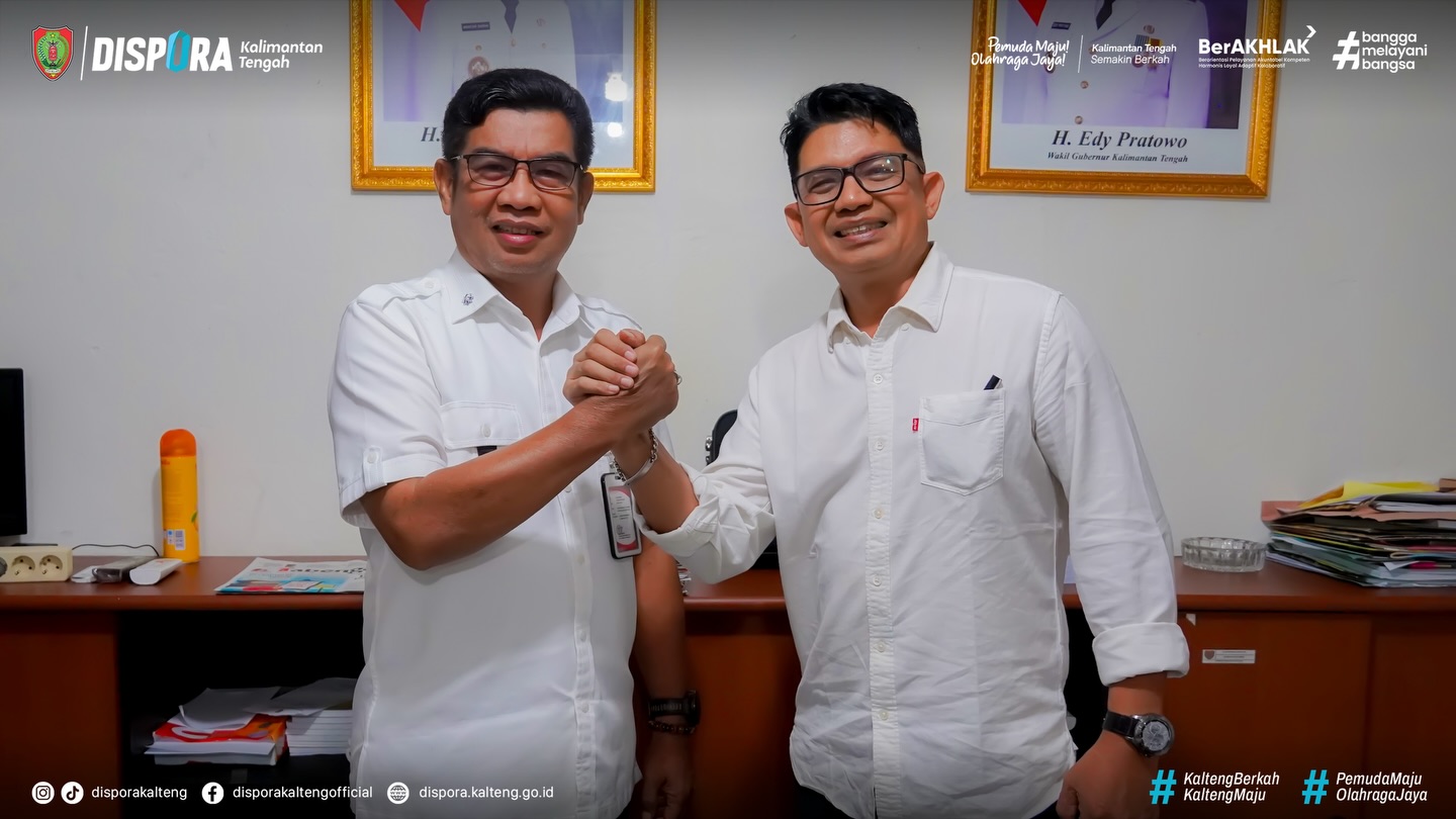 Palangka Raya – Kadispora Kalteng, Agus Siswadi, menerima kunjungan dari Dinas Perpustakaan dan Arsip Prov. Kalteng yang dipimpin oleh Plt. Kepala Bidang Layanan, Teknologi Informasi, dan Kerja Sama Perpustakaan, Febrianto Boediman, didampingi jajaran Dispursip Kalteng, Gracia Esther, Rabu (25/2/2026), di Ruang Kerja Kadispora Kalteng.