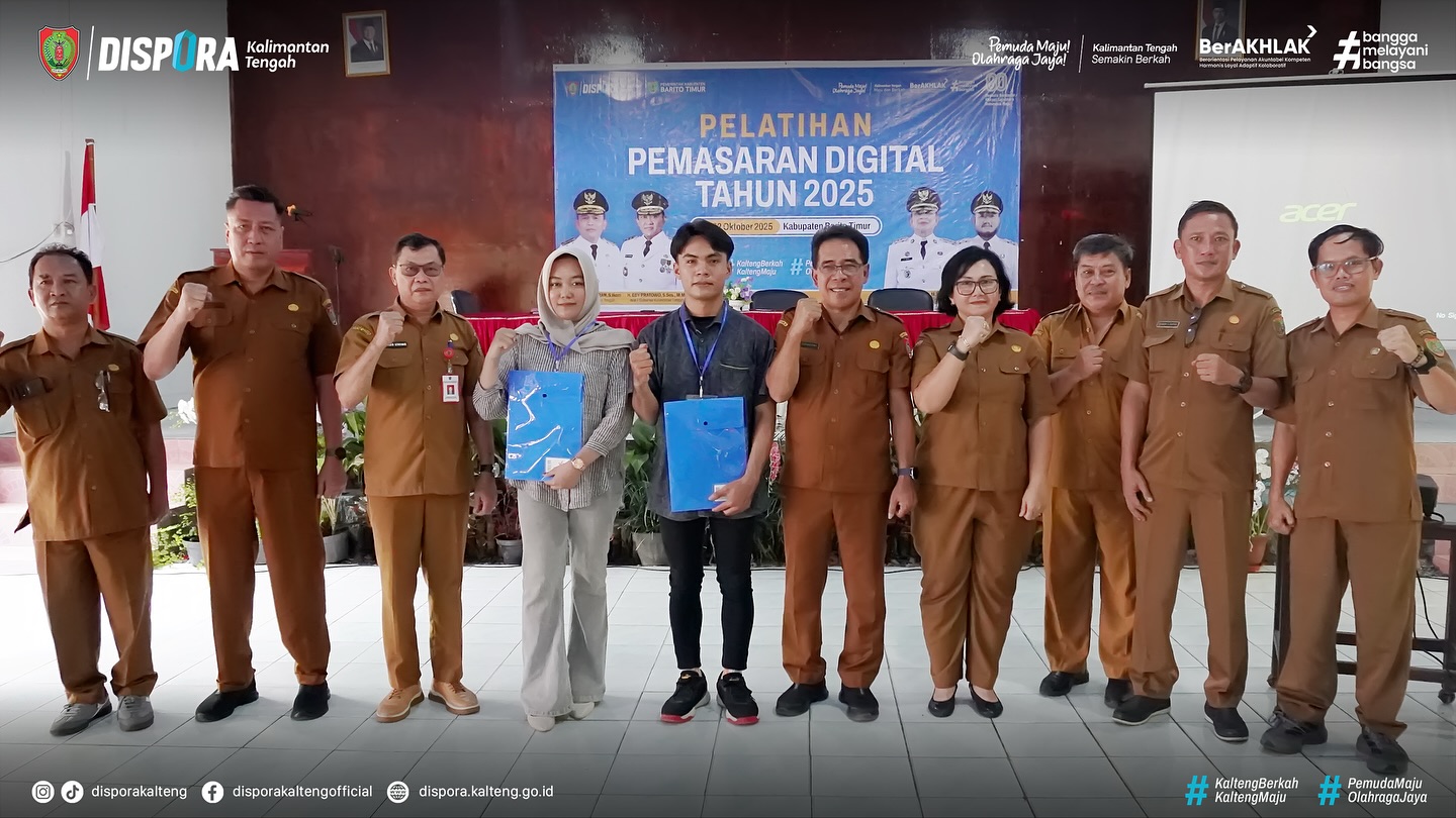 Tamiang Layang – Dispora Kalteng bekerja sama dengan Disbudparpora Bartim menggelar Pelatihan Pemasaran Digital Tingkat Provinsi Kalimantan Tengah Tahun 2025. Kegiatan ini dipusatkan di Aula Hotel Ade, Tamiang Layang, pada Senin (20/10/2025).