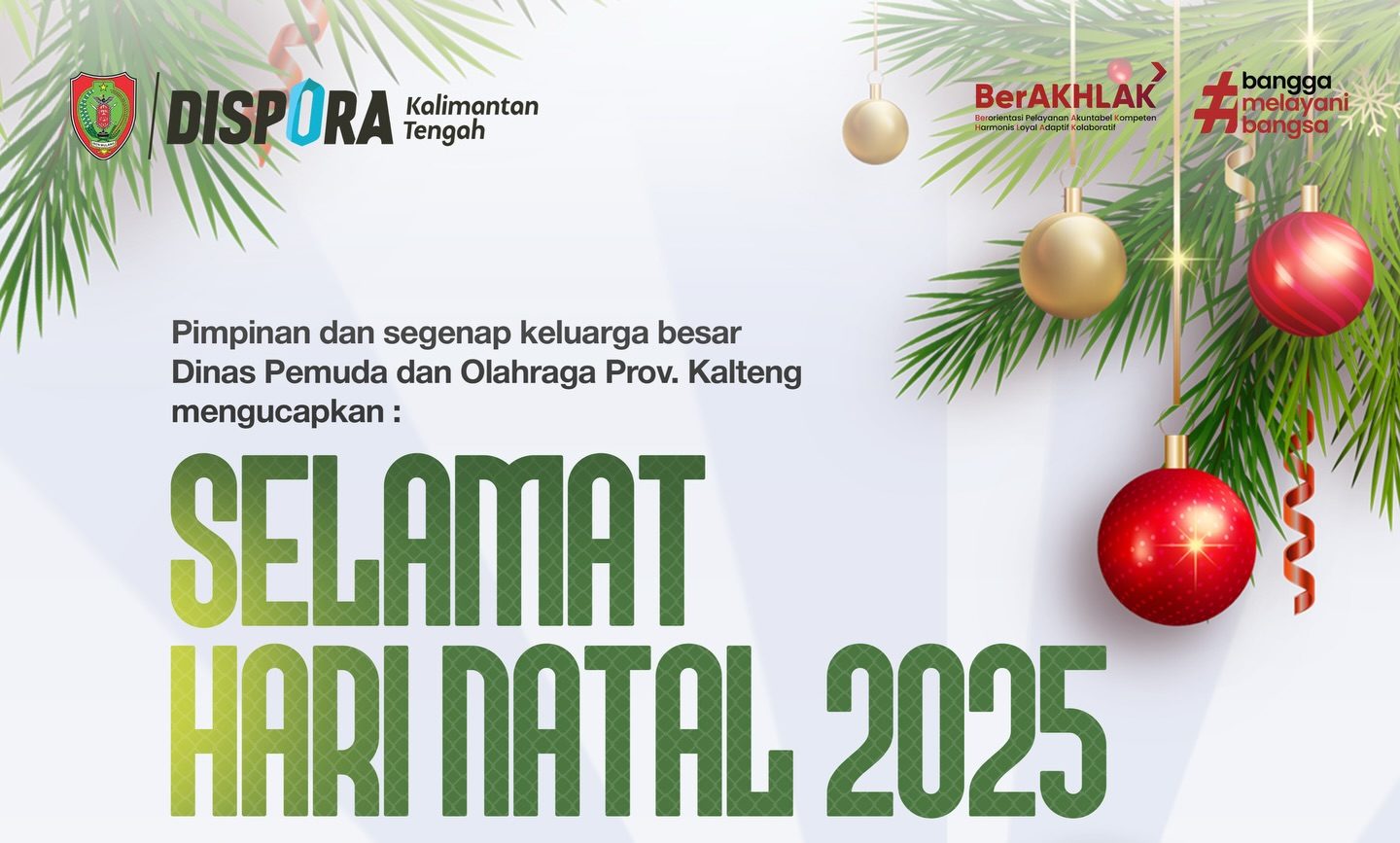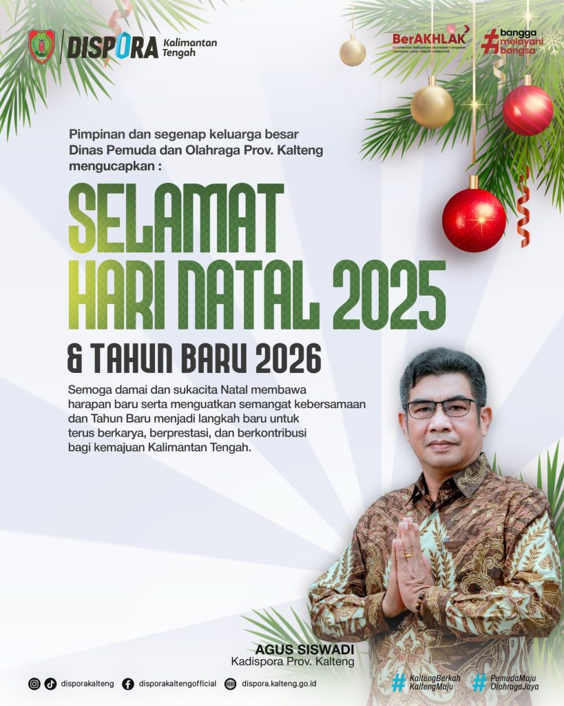 Pimpinan dan segenap keluarga besar Dinas Pemuda dan Olahraga Provinsi Kalimantan Tengah mengucapkan Selamat Hari Natal 2025 dan Tahun Baru 2026.